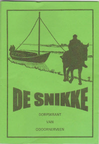 Op dit moment heeft u de eerste Odoornerveense krant in uw handen, geheten 'De Snikke'. Deze naam is bedacht door Geert Boels. Uit de weinige inzenders is deze naam gekozen, omdat er een duidelijke historische achtergrond aan verbonden is. Vroeger kwamen namelijk niet alleen materialen e.d. met dit vaartuig, maar tevens de laatste nieuwtjes en wetenswaardigheden. Vooral dit laatste willen we in deze krant duidelijk naar voren laten komen. De tekening op de voorkant is gemaakt door H. (Henja, red.) Bakker. Een hele mooie weergave van Odoornerveen en daarin de naam van de krant duidelijk verwerkt dachten wij zo.