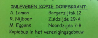 Dan nog een paar mededelingen. De volgende krant zal eind februari / begin maart worden uitgebracht. Copy voor deze krant moet uiterlijk 15 februari in de lagere school worden ingeleverd. OVO zal deze krant in elkaar zetten en bezorgen.